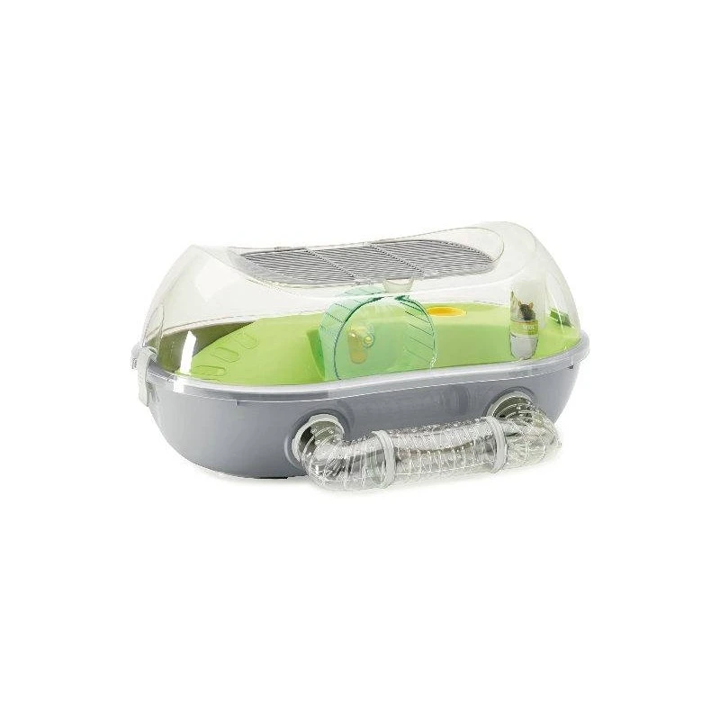 La cage est Ă©quipĂ©e d’une roue de course tentante, d’une plate-forme colorĂ©e avec un toboggan et d’un tunnel de jeu pour encore plus de plaisir.