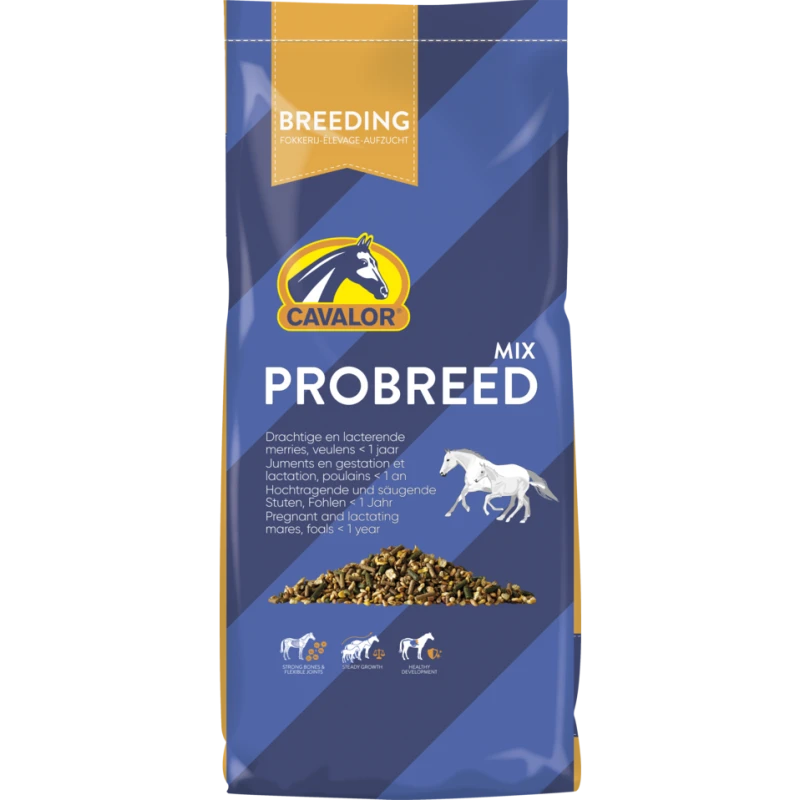 Un bon fonctionnement du métabolisme de la jument – afin de puiser suffisamment d’éléments constitutifs et d’énergie dans les nutriments – est essentiel pendant la gestation et la lactation, car il permet à la jument de rester en bonne condition physique et au poulain de se développer correctement. Aussi le concept Cavalor Nutri-Balance est-il fondamental, car il offre la bonne combinaison, d’une part, de protéines, minéraux et vitamines (éléments constitutifs) et, d’autre part, de graisses et hydrates de carbone (apport d’énergie). À cet égard, la digestibilité des nutriments (tels que les céréales soufflées et en flocons) est absolument fondamentale pour prévenir les poussées et/ou interruptions de croissance.