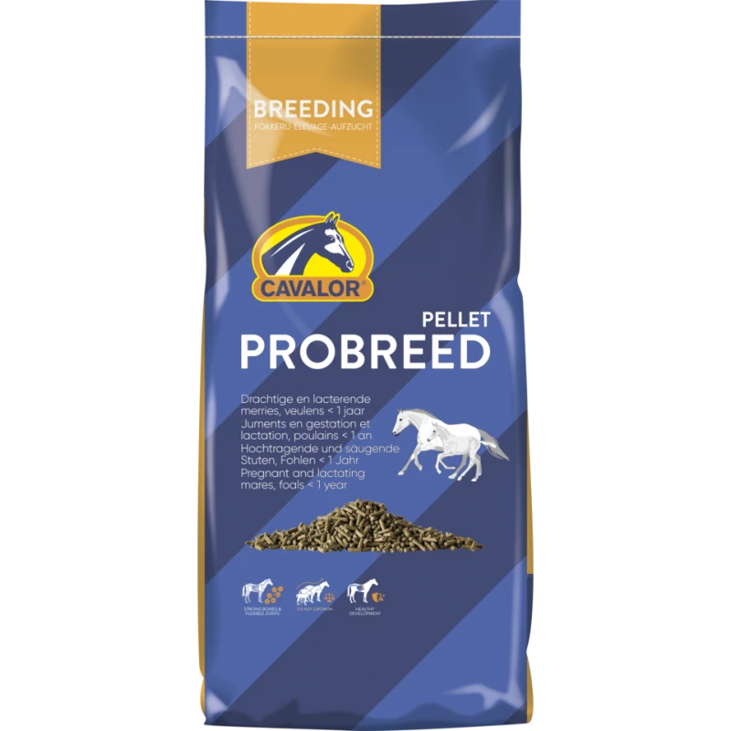 Un bon fonctionnement du métabolisme de la jument – afin de puiser suffisamment d’éléments constitutifs et d’énergie dans les nutriments – est essentiel pendant la gestation et la lactation, car il permet à la jument de rester en bonne condition physique et au poulain de se développer correctement. Aussi le concept Cavalor Nutri-Balance est-il fondamental, car il offre la bonne combinaison, d’une part, de protéines, minéraux et vitamines (éléments constitutifs) et, d’autre part, de graisses et hydrates de carbone (apport d’énergie). À cet égard, la digestibilité des nutriments (tels que les céréales soufflées et en flocons) est absolument fondamentale pour prévenir les poussées et/ou interruptions de croissance.