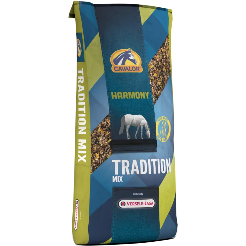 - Cavalor® Tradition Mix est un mélange savoureux et sans avoine destiné aux chevaux au repos ou aux chevaux peu actifs.