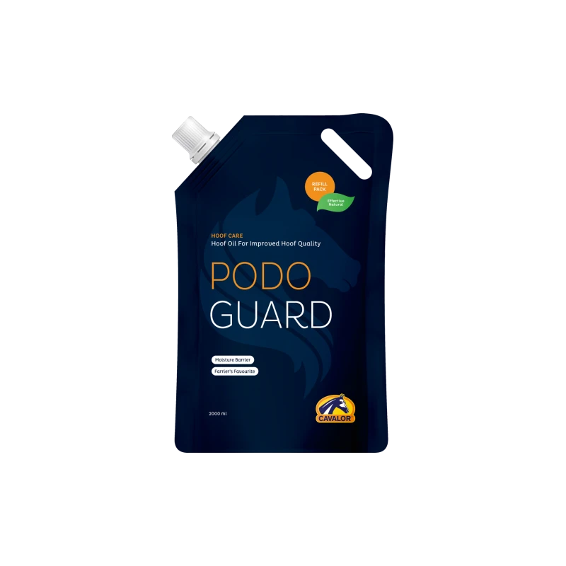 Cavalor PodoGuard crĂ©e un taux d’humiditĂ© idĂ©al qui favorise le rĂ©tablissement des sabots endommagĂ©s pendant le dĂ©veloppement d’un nouveau sabot sain.