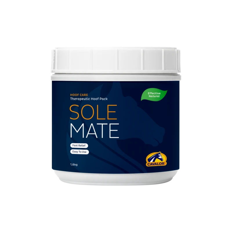 - Cavalor SoleMate a été développé pour fournir un traitement naturel aux chevaux dont les pieds sont endoloris par le galop, le saut, des fers à cheval abîmés, des soles fines, des contusions, des abcès, etc.