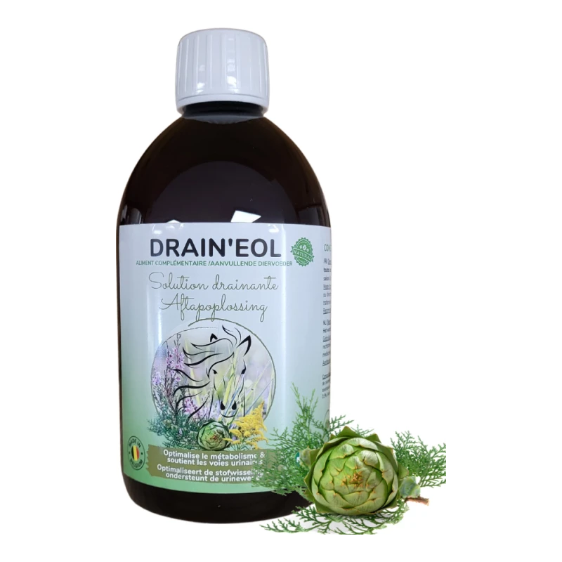 DrainâEOL est une solution buvable qui permet de dĂ©toxifier lâorganisme tant au niveau du foie que des reins. De plus, une cure de DrainâEOL permet une fonction protectrice de ces fonctions importantes de lâorganisme. Une cure de DrainâEOL est idĂ©ale aux changements de saison dĂšs les premiĂšres nuits froides, plus d’humiditĂ© le matin, changement de poils, souvent pĂ©riode de transition alimentaire, d’administration de vermifuges, … De plus, Ă©limine les toxines, renforce l’immunitĂ©, soutient le foie & les fonctions rĂ©nales. Il est particuliĂšrement conseillĂ© aprĂšs une maladie ou aprĂšs un long traitement sous anti-inflammatoire ou antibiotique.