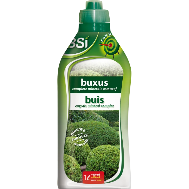 L’engrais liquide pour buis vous offre la solution aux besoins du buis. GrĂące Ă la formule Ă©quilibrĂ©e, avec un apport considĂ©rable d’azote, le buis obtiendra une couleur vert foncĂ©. La corissance se dĂ©roulera progressivement, sans pics de croissance. Les oglio-Ă©lĂ©ments et les chĂ©lates supplĂ©mentaires vous garantissent du buis en pleine forme!