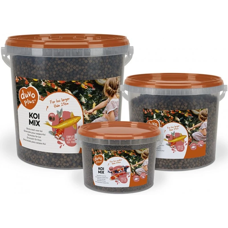 DĂ©butez la journĂ©e de vos carpes KoĂŻ avec duvoplus koi mix. Car cet aliment renferme tout ce dont ils ont besoin et sont faciles Ă digĂ©rer. Un Ă©tang plein de vie, voilĂ l’objectif que nous poursuivons chez duvoplus ! duvoplus koi mix est un aliment complet qui se compose de 3 granulĂ©s diffĂ©rents pour toutes les carpes KoĂŻ jusqu’Ă 25 cm. Ces granulĂ©s flottants d’un diamètre de 3 mm sont dĂ©licieux et parfaitement adaptĂ©s aux besoins alimentaires de vos carpes KoĂŻ.