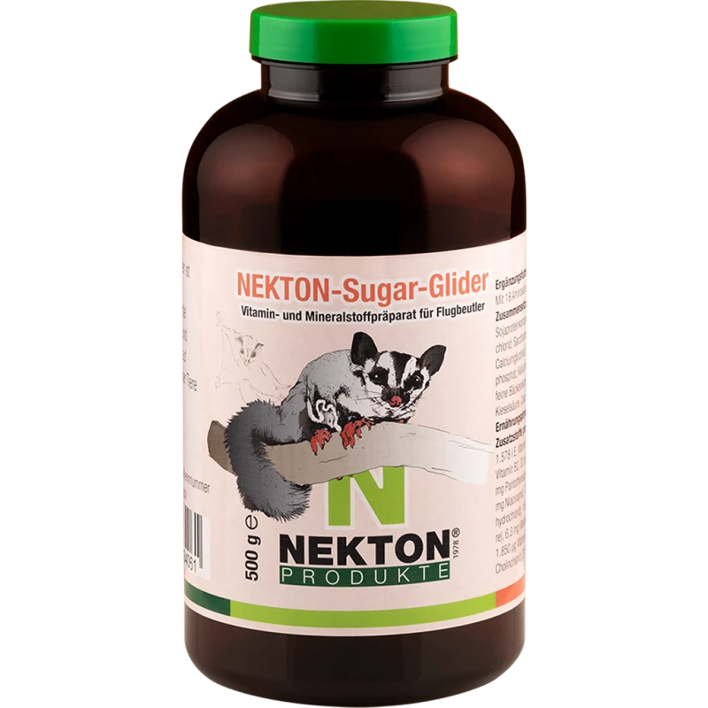 Les phalangers volants (aussi appelés Sugar Gliders) sont de petits opossums planeurs et seuls quelques particuliers en possèdent en Allemagne. Les zoos et parcs animaliers à travers le monde permettent au contraire souvent d’observer ces drôles de petits animaux sociables. NEKTON-Sugar Glider est un complément alimentaire spécial, riche en vitamines et minéraux, adapté de façon précise aux besoins de ces animaux. Il est important de veiller à ce que l’alimentation soit équilibrée. Cela peut se révéler délicat car les phalangers volants peuvent être très difficiles. Ils ont tendance à a voir une préférence pour certains aliments. Cela peut varier d’un jour à l’autre,ce qui rend une alimentation équilibrée compliquée. C’est pour cette raison que NEKTON a développé un complément alimentaire pour