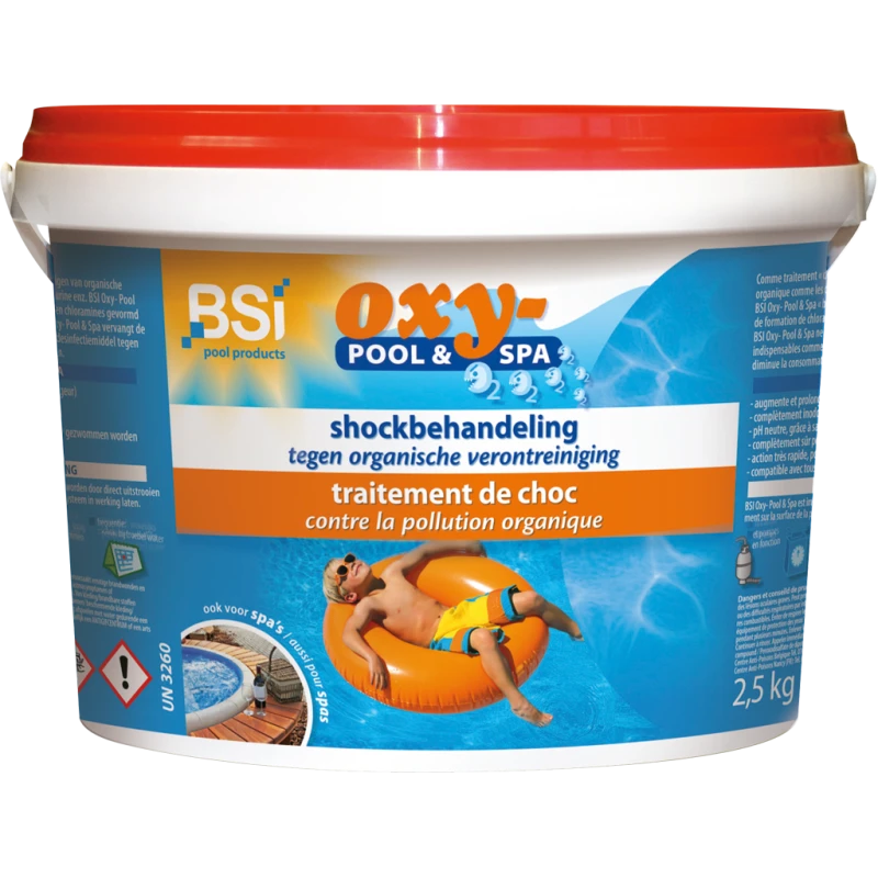 Oxy Pool & Spa augmente le taux d’oxygène dans l’eau. Ce produit permet un traitement de choc sans chlore pour dĂ©truire la pollution organique. Il ne peut jamais remplacer le chlore (qui est indispensable pour une piscine) mais il peut fortement diminuer la consommation de chlore puisque le taux de chlore libre actif reste prĂ©sent deux fois plus longtemps.Oxy Pool & Spa augmente le taux d’oxygène dans l’eau. Ce produit permet un traitement de choc sans chlore pour dĂ©truire la pollution organique. Il ne peut jamais remplacer le chlore (qui est indispensable pour une piscine) mais il peut fortement diminuer la consommation de chlore puisque le taux de chlore libre actif reste prĂ©sent deux fois plus longtemps.