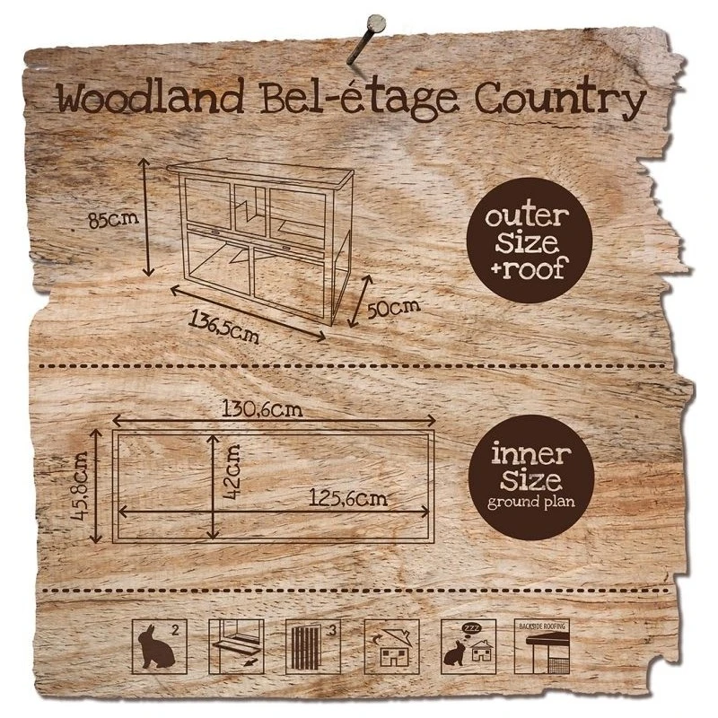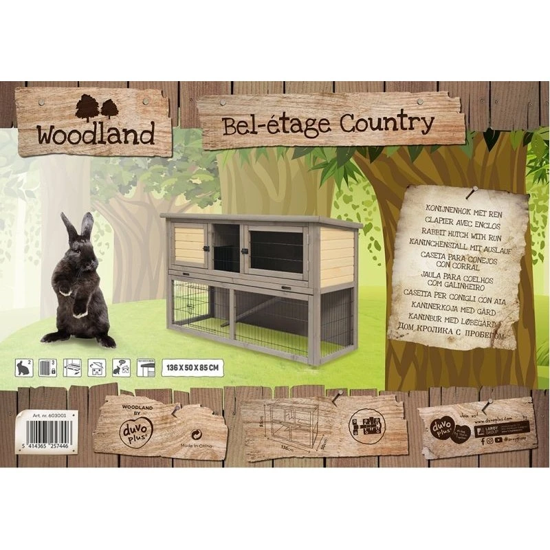 La cage Ă lapins Woodland Bel-Ătage Country de Duvo+ est une cage trĂšs rĂ©sistante et durable munie de deux Ă©tages. L’Ă©tage du haut renferme un espace ouvert et un abri de nuit. L’Ă©tage du bas renferme un large enclos pour permettre Ă votre lapin de sautiller librement. Un tiroir pratique pour Ă©vacuer les dĂ©jections permet de garder l’Ă©tage supĂ©rieur propre. Trois possibilitĂ©s d’accĂšs sont offertes et le toit basculant permet d’accĂ©der facilement Ă l’intĂ©rieur de la cage. La cage a dĂ©jĂ Ă©tĂ© traitĂ©e une fois, mais nous vous conseillons de rĂ©pĂ©ter pĂ©riodiquement l’opĂ©ration pour accroĂźtre la durabilitĂ©.