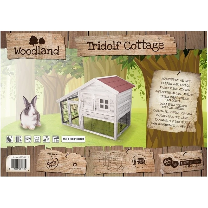 Le clapier Woodland Tridolf de Duvo+ est un magnifique clapier à 2 étages qui est confectionné en pin. L’abri de nuit est doublement isolé. Les 2 étages sont reliés l’un à l’autre par un petit escalier. Le clapier est muni de 4 portes et d’un tiroir coulissant pour un nettoyage aisé. En outre, le clapier est doté d’un grenier de rangement pour pouvoir y entreposer du foin, de la paille ou de la nourriture, par exemple. En hiver, vous pouvez même y glisser de la paille supplémentaire pour une meilleure isolation.
